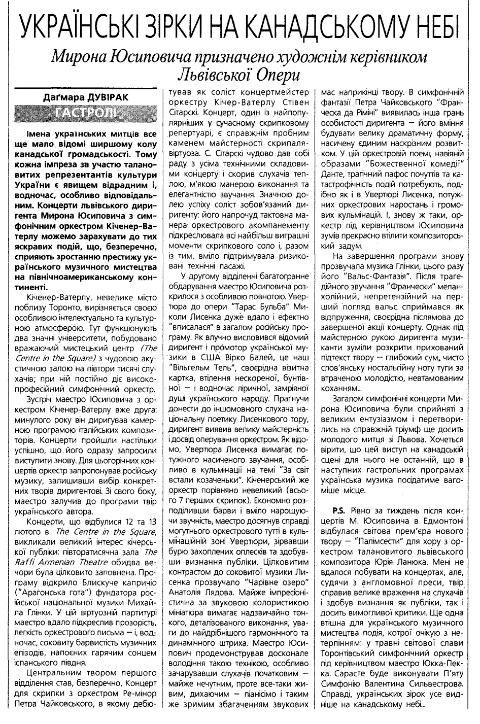 Українські зірки на канадському небі: Мирона Юсиповича призначено художнім керівником Львівської Опери